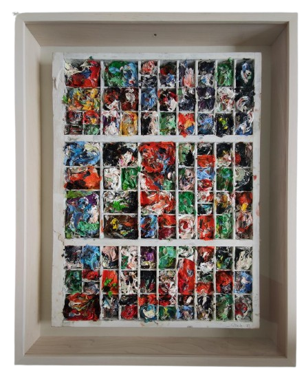 ...hier ein Beispiel für einen Rautenrahmen mit der Zeichnung "Zwei Hände" von Isabelle Dutoit (Ahornleiste weiß gebeizt mit entspiegeltem Glas), zu sehen in der Ausstellung "Die Jahrhundert Bar" in Berlin zur Art Week.