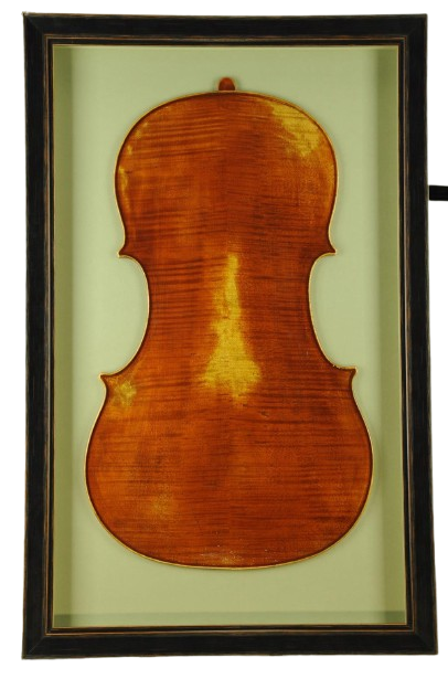 Celloboden von Klaus Ludwig Clement Fine String Instruments, zu sehen im "Ristorante Violino" in Leipzig. Mit freundlicher Genehmigung.